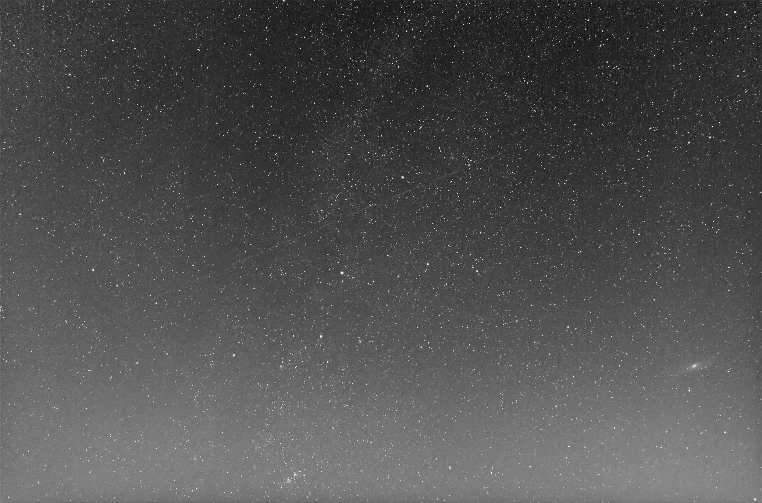 I went out again to see remnants of the Perseid showers after their peak, but only saw two meteors. I did however get a cool Andromeda shot, plus a very annoying but well-placed satellite.