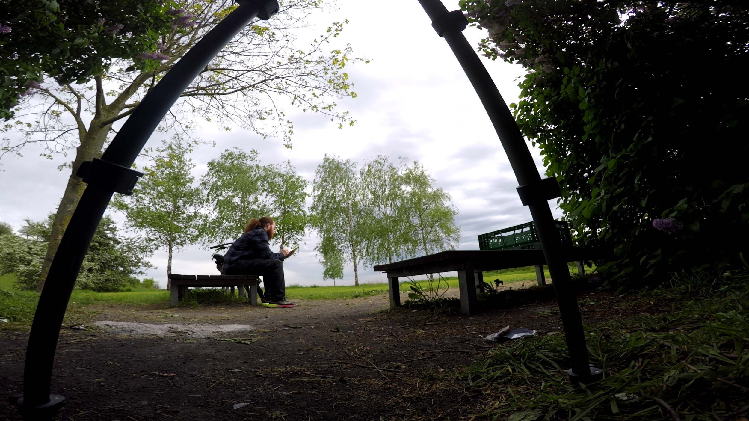 Noted sounds: bike sounds on road/gravel/dirt from head height, wind, pedestrians/bikes passing by, sidenote: weird 30kHz from tyres/gears? Very interesting.